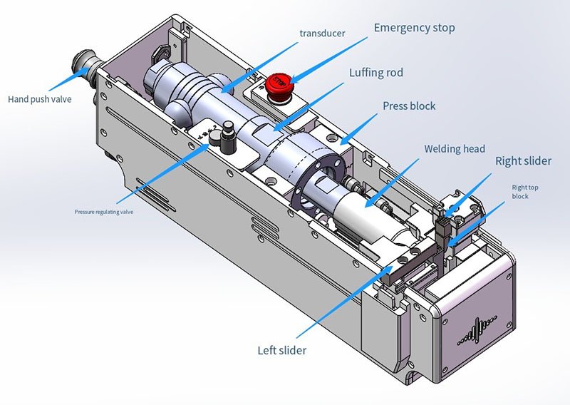- 超音波ハーネス溶接機 装置型式番号 WPM-X00 動作周波数 20KHz ラックサイズ 573×220×190(mm) シャーシ寸法 345×477×155(mm) 入力電圧 AC 220V/50Hz ハーネスの正方形を溶接 0.35mm² -- 12mm² 銅線とアルミ線 溶接銅線(アルミ線)径 Φ0.3mm以下 設備電力 3000W 設備重量 25kg(溶接ラック)+10kg(電気ボックス) 表示モード 4.3インチ 液晶画面+キー調整制御 生産効率 溶接 部の四角によりますが、約0.6秒/回 コアピース ジェネレーター、トランスデューサー、溶接ヘッド 可動部品 シリンダー